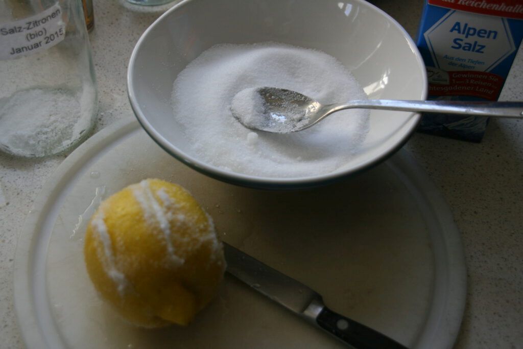unbehandelte Bio-Zitronen, Salz, Wasser