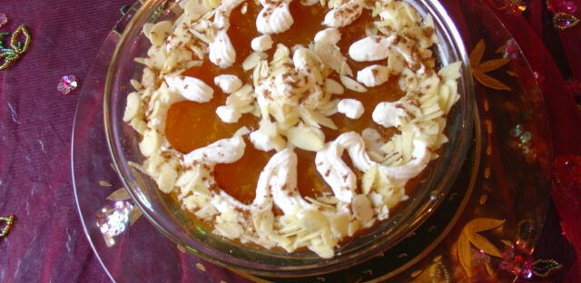 Amardine sind dünngewalzte Blätter aus getrockneten und gepressten Aprikosen (arabisch Mish-Mish), die man im Orient überall oder bei uns in orientalischen Läden kaufen kann. Man kann auch ganz normale getrocknete Aprikosen verwenden, allerdings schmeckt der Pudding aus Amardine-Blättern um Klassen besser. Amardine ist auch der traditionelle Pudding für den Ramadan, die islamische Fastenzeit. Vielleicht heißt er deshalb Amar-ed-Dine, »Mond der Religion«. Aber er schmeckt auch anderen Religionszugehörigen und zu anderen Zeiten sehr gut.