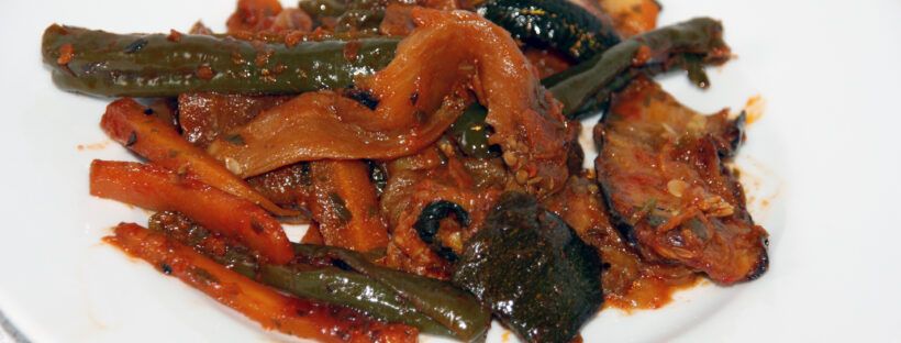 Das Gemüse passt zu Fleischspeisen oder zur orientalischen kalten u. warmen Platte.