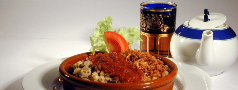 Echte Hausmannskost, die es in Kairo in speziellen kleinen Imbiß-Garküchen gibt und die äußerst preiswert und sättigend ist. Sozusagen die ägyptische Variante der schwäbischen „Linsen mit Spätzle“…..