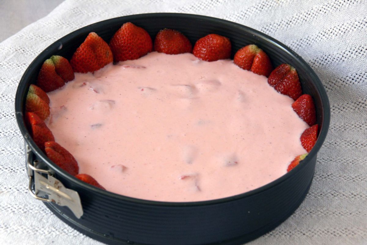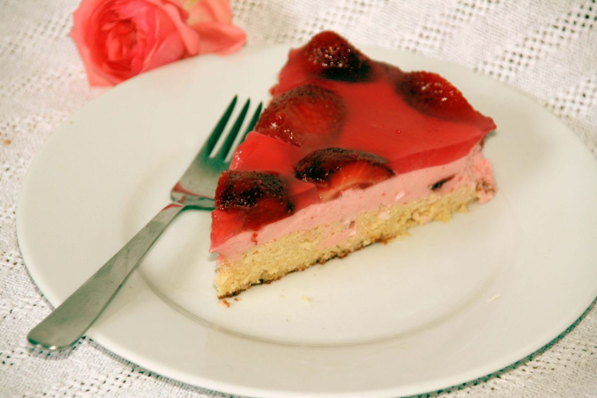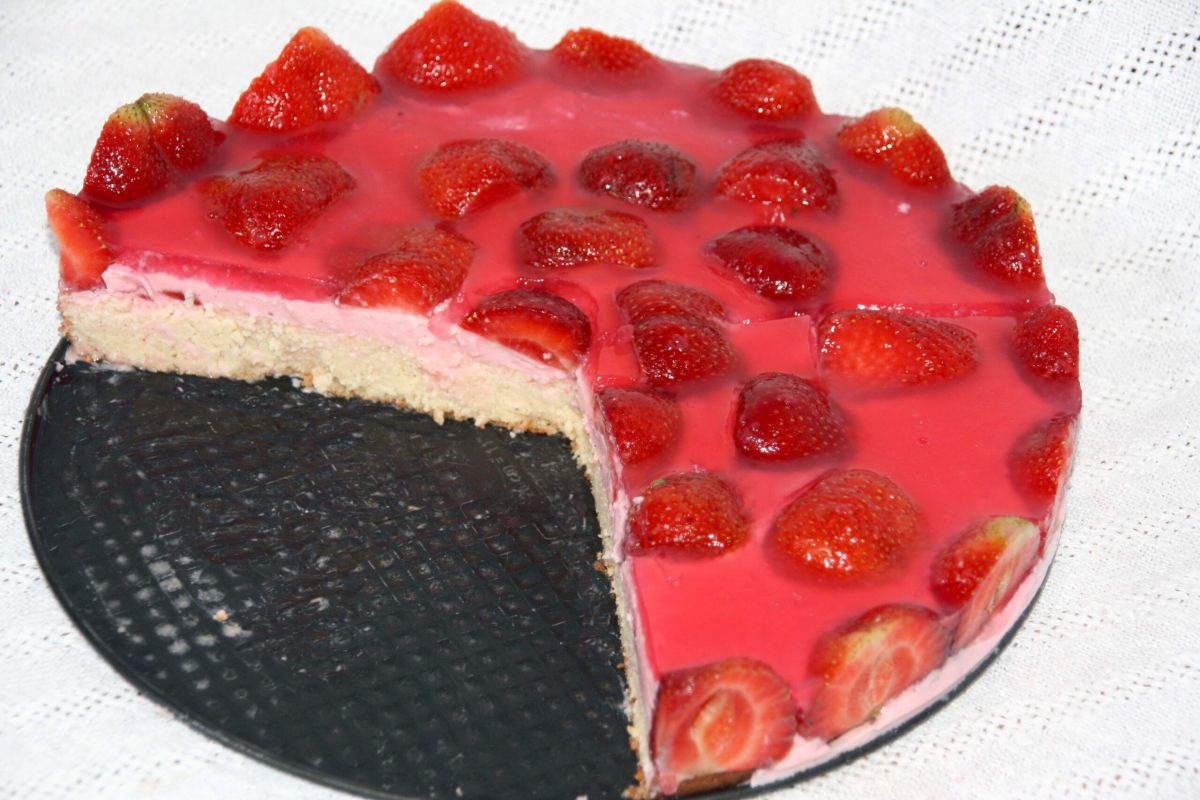 Damit der Boden nicht durchweicht, streue ich 30 g Kokosflocken darüber, bevor die Creme oder das Obst darauf kommt. Zum Beispiel: wie hier Kokos-Erdbeer-Kombi.