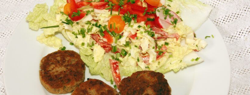 Die Thunfischburger sind eine super Idee von SchlankmitVerstand. Dazu habe ich einen knackigen Chinakohlsalat mit selbstgemachter Mayonaise serviert.