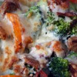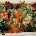 Backofen auf 200° vorheizen. Broccoli blanchieren bis zur gewünschten Bißfestigkeit.