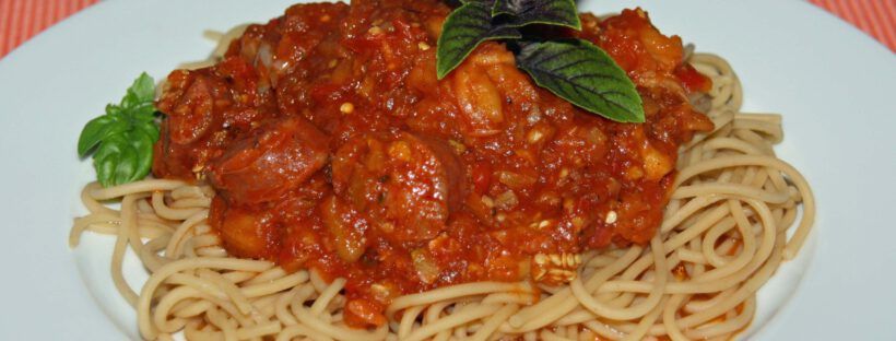 Man braucht keine weiteren Gewürze, die Chorizo ist würzig genug.