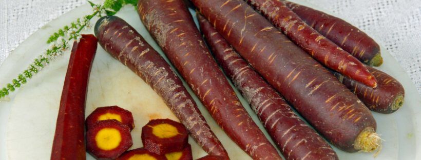Ende der 1980er Jahre hatten US-amerikanische Forscher die Idee, eine schwarze Ur-Karotte mit der heutigen orangefarbenen Karotte zu kreuzen. Ziel war es, den ursprünglichen Geschmack der Ur-Karotte wieder aufleben zu lassen. Die entstandene Sorte ist vom Geschmack her süßer, saftiger und mit zusätzlichen Nährstoffen ausgestattet. Sie enthält bis zu vierzig Prozent mehr Betacarotin, eine Vorstufe von Vitamin A, als die orangefarbene Karotte. Vitamin A ist ein bekannter „Freie Radikale“-Fänger, wirkt also Oxydationsprozessen und somit dem vorzeitigen Alterungsprozess entgegen.Für die lila Farbe sorgt der lilafarbene Pflanzenfarbstoff Anthocyan, der auch in Johannisbeeren, Brombeeren, blauen Trauben oder Auberginen enthalten ist. Die Anthocyane fangen ebenfalls „freie Radikale“ in den menschlichen Zellen ab und sind an Energieübertragungsprozessen beteiligt. Sie wirken also auch nochmal antioxidativ und außerdem blutdrucksenkend