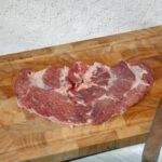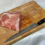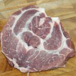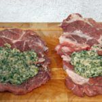 4 dicke Schweineschnitzel (Cordon bleu Schnitzel) oder ein Stück Halsgrat, von dem man die Scheiben selbst schneidet. Halsgrat ist durchwachsen und daher weniger trocken als Schnitzel.