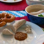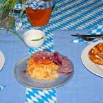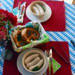 Wer heute aufs Oktoberfest will, braucht wahrhaft gute Nerven und viel Geduld, vor allem wenn man mit einer geradezu kosmischen Geschwindigkeit von ca. 30 cm pro Schritt eingeklemmt in einer Menschenmasse vor sich hin geschoben wird oder epische Wartezeiten in den Zelten erdulden muss. Wer das nicht braucht, aber gerne mal wieder mit ein paar bayrischen Spezialitäten feiern möchte, der verlegt „die Wies´n“ einfach in den eigenen Garten oder das eigene Wohnzimmer und lädt seine Freunde ein.  Die weißblaue Tischdecke sorgt fürs „Wiesn-feeling“ und mit einigen deftigen Schmankerln kann eigentlich nichts schief gehen. Die Gerichte sind meist einfach und schnell zuzubereiten. Ob es nun der leckere Obatzde mit Zwiebeln und Brezn (auch für Vegetarier geeignet) oder die Münchner Weißwürst (die ursprünglich aus Augsburg stammen!) mit süßem Senf zum Brunch ist. Oder ein Münchner Schnitzel mit Kartoffelsalat zum Mittag- oder Abendessen, ein Bier oder ein Radler schmeckt allemal dazu. Als Nachspeis oder zum Kaffee gibts eine Münchner Kartoffeltorte mit Ribisln.