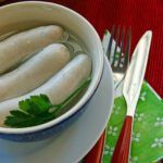 Die Weißwürste werden entweder in Brühe mit Petersilie erhitzt (auf keinen Fall gekocht!) oder es gibt eine „Opferwurst“. Das heißt, eine Wurst wird in Scheiben geschnitten und gibt ihre Würze an das Siedewasser ab, damit es bei den anderen Würsten den Geschmack nicht verwässert.