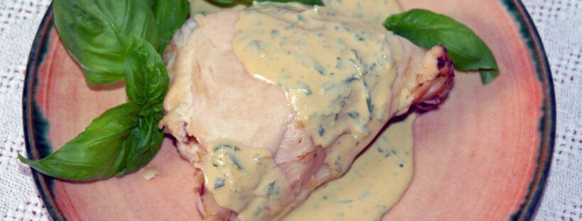 Thunfisch mit Kapern pürieren. Petersilie und Basilikum fein hacken. In einem hohen Rührbecher die Eigelb mit Salz und 2 EL Ztironensaft schaumig rühren und in dünnem Strahl das Olivenöl zugeben (Handrührgeräte, Zabuerstab), bis eine cremige Mayonnaise entstanden ist. Thunfisch, Kräuter und etwas Brühe dazurühren. Mit Zitrone, Salz und Pfeffer pikant abschmecken. Das Huhn aus der Brühe nehmen und mit der Sauce servieren.