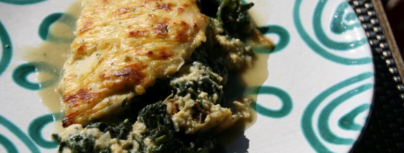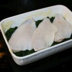 Die Schollenfilets salzen und pfeffern und auf den Spinat legen. Mit der restlichen Käsemilch begießen und ca. 30 Min im vorgeheizten Backrohr bei mittlerer Hitze (175°) backen, bis die Oberfläche leicht bräunt.