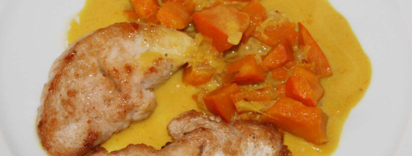 Eine simple, sättigende und sehr leckere Sauce zu gebratenem Fleisch. Dazu gibts eine große Schüssel grünen Salat. Die Kürbis-Currysauce geht für Veganer wunderbar, wenn sie mit Kokosmilch gemacht wird und passt zum Beispiel zu veganen Bratlingen aller Art.