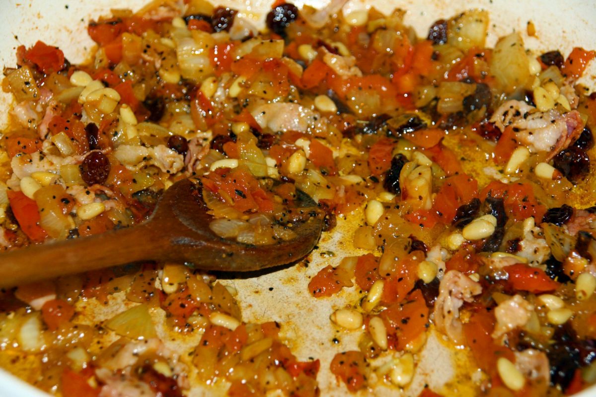 Gestern wollte ich im türkischen Laden noch schnell Petersilie holen, denn dort gibt es die großblättrige viel günstiger als in deutschen Supermärkten. (Wenn es sie überhaupt gibt, dann magere Sträußchen für ziemlich viel Geld). Und an Wochenenden gibt es dort auch frischen Fisch.Der hat mich dann daran erinnert, dass wir schon länger keinen Fisch mehr gegessen hatte und so plante ich spontan ein leckeres Low Carb Abendessen mit mediterranen Beilagen: Zwiebeln, Rosinen, Tomaten, Pinienkerne und etwas Bacon mit viel Butter und Olivenöl geschmort und mit Rosmarin und Kräutern der Provence gewürzt. Herrlich!