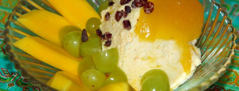 Das kommt dabei raus wenn man zuerst das Rezept nicht richtig liest und dann auch noch nicht alle Zutaten im Haus hat…. Wollte nämlich erst Bayrische Creme mit einer Orangen-Passionsfruchthaube machen. Dann hab ich zum Aufkochen der Vanilleschote aber gleich ganze Sahne (allerdings weniger als angegeben…) statt nur einen kleinen Teil genommen. Somit hatte ich hinterher natürlich keine mehr zum Drunterheben. Zum Einkaufen hatte ich keine Lust mehr, und so kam dann das eigentlich gar nicht vorgesehene Eiweiß in Form von Eischnee zum Einsatz und das Ergebnis ist ein megaleckerer fluffiger Vanilleschaum, mit einer Geleeschicht aus Orangensaft und Passionsfrucht. Mit Xucker gesüßt ist er auch noch Low Carb.