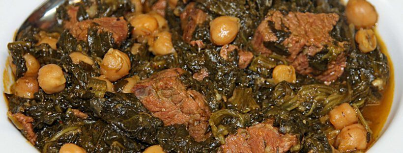 Sabanikh matbukha bil Hommus heißt das Gericht auf ägyptisch-arabisch. Gekochter Spinat mit Kichererbsen. Das Rindfleisch wird dabei unterschlagen……