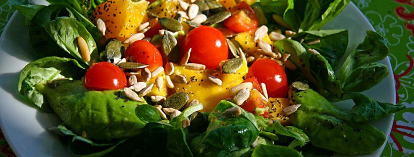 Ich liebe Obst im Salat. Das macht das Ganze so fruchtig und lecker, dass man kein zusätzliches Obst (was ja nicht immer Low Carb ist) mehr braucht. Auf stärkehaltiges Obst wie Bananen sollte man eh tunlichst verzichten und sehr süßes Obst wie Mango oder Weintrauben auch nur in geringen Mengen verzehren. Beeren darf man….immer.