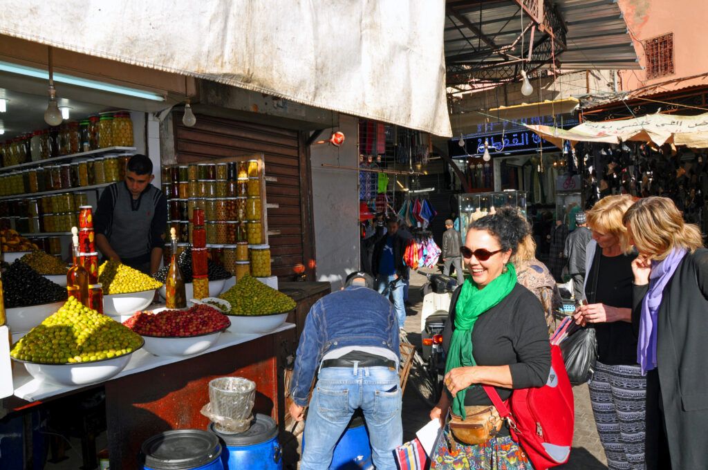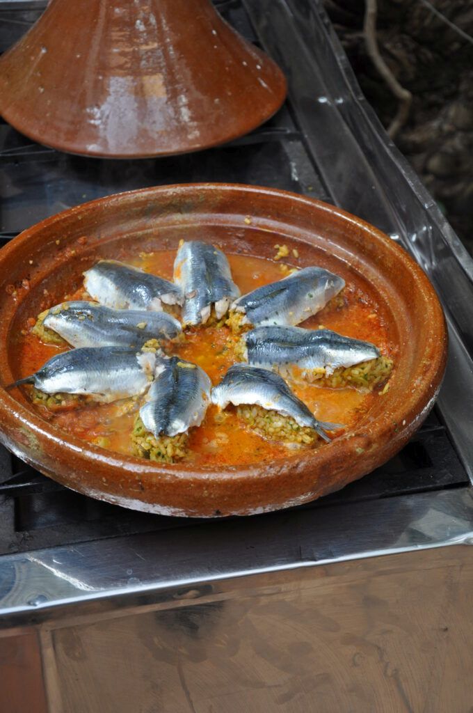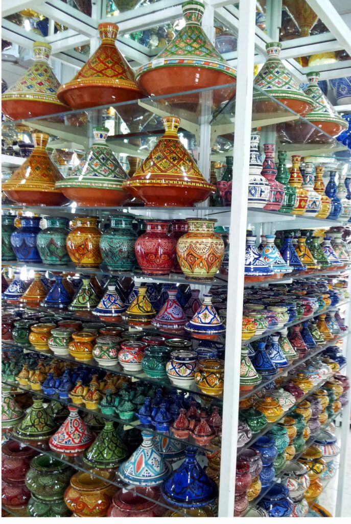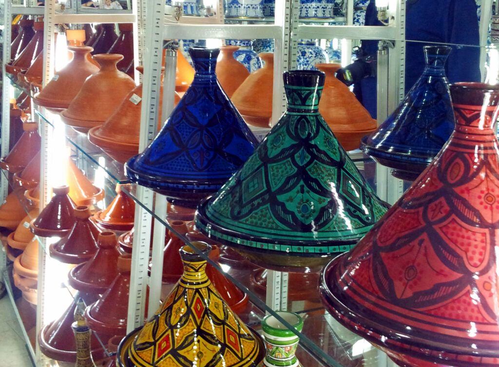 Die schönen bunten, oft noch mit Metallverzierungen geschmückten Tajines werden allerdings nicht zum Kochen verwendet, sondern nur zum Servieren.