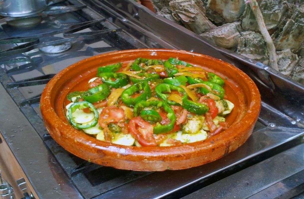 Der Ton ist ein feinporiges Material, das beim Erhitzen elastisch reagiert, weshalb eine gute Tajine auch bei plötzlichen Temperaturwechseln nicht zerspringt. Der Ton schützt das Essen vor Verbrennen und verteilt die Hitze gleichmäßig, so dass der Inhalt schonend im eigenen Saft gegart wird.