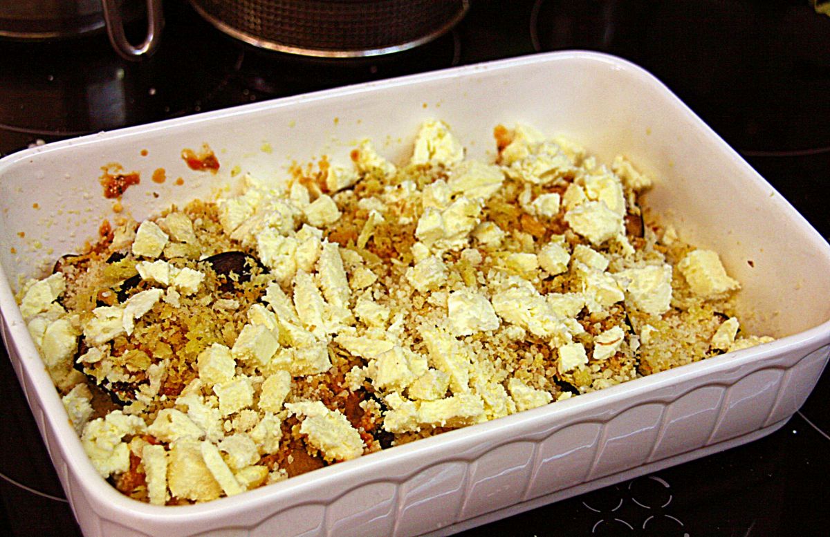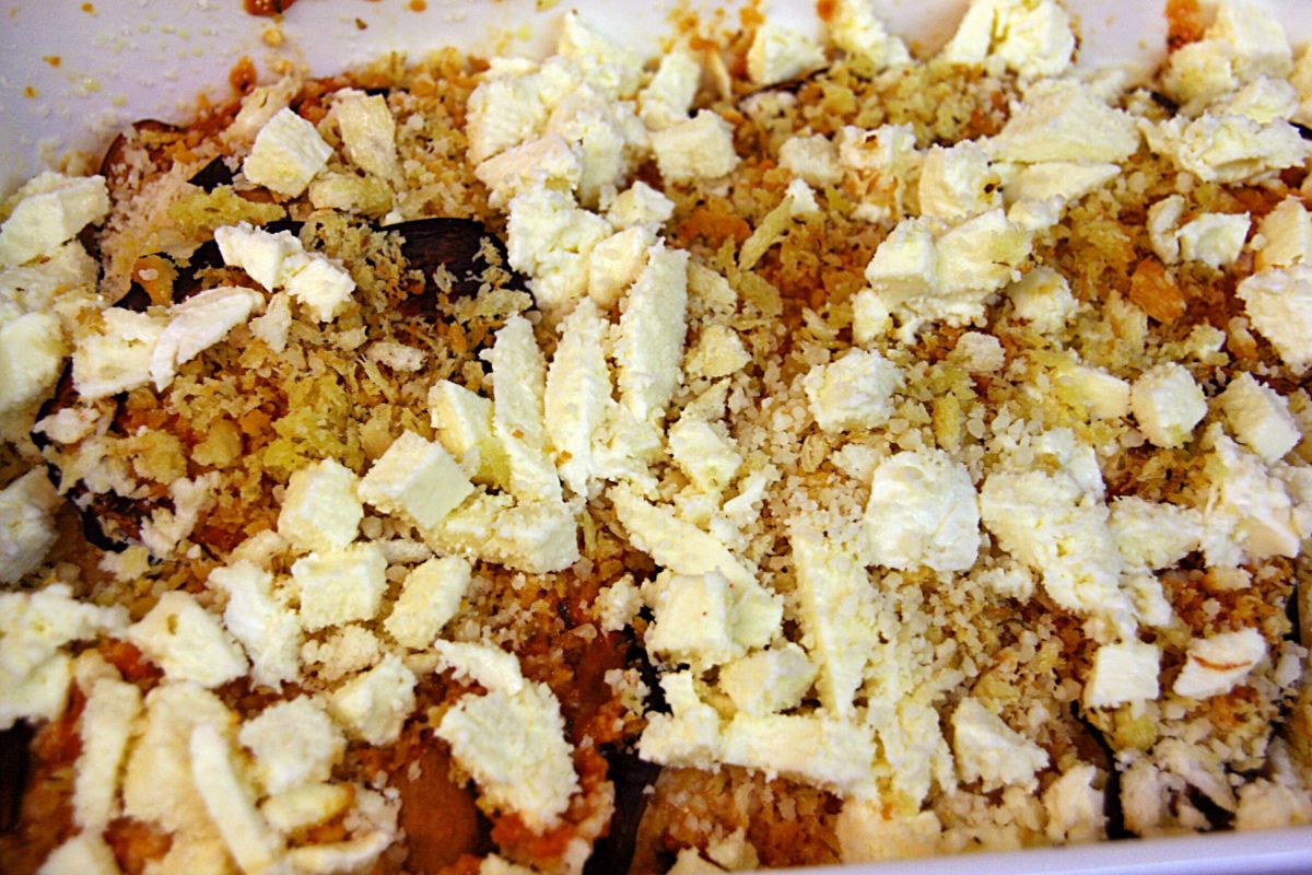 Für Käse- und Auberginenlieberhaber genau das Richtige. Wer Low Carb isst, läßt einfach die Brotbrösel weg. Der Auflauf sättigt trotzdem sehr!