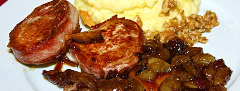 Hier das Rezept für eine herbstlich schmackhafte Variante der „klassischen“ Schweinemedaillons, das mir eine Freundin in die Hand gedrückt hat. Statt Trockenpflaumen und Bacon gibt es hier luftgetrockneten Schinken und Trauben. Ausprobiert, für gut befunden!