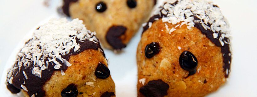 Diese Igelschar darf man ohne Reue vernaschen. Die Kuvertüre ist 75% Kakao, statt Mehl gibt es diverse Ersatzmehle und Zucker wird sowieso ersetzt durch Xucker.