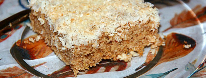 Bei 140° Grad ca. 35 Minuten Backen. Aus dem Ofen nehmen und sofort gleichmäßig die Sahne darüber verteilen und abkühlen lassen.