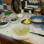 Das Orientalische Büffet oben besteht aus 18 verschiedenen Vorspeisen, gerührt, gebacken, gebraten, gerollt, gekocht, geschnippelt, gefüllt. Hergestellt wurde es im Rahmen eines Kochkurses mit dem Überschriftsthema. Dauer: Gute 3 Stunden mit 7 Personen. Gereicht hätte es aber für 20-25 Personen.
