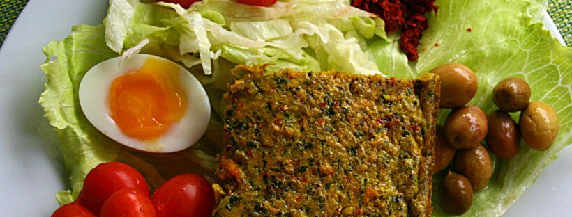 Beides wird mit vielen Eiern hergestellt und ist lauwarm oder kalt ein leckeres, leichtes Gericht mit viel Protein und wenig Kohlehydraten, das dazu noch sehr gut sättigt. Salat dazu oder wie hier Oliven, gekochtes Ei, Tomate und Harissa.