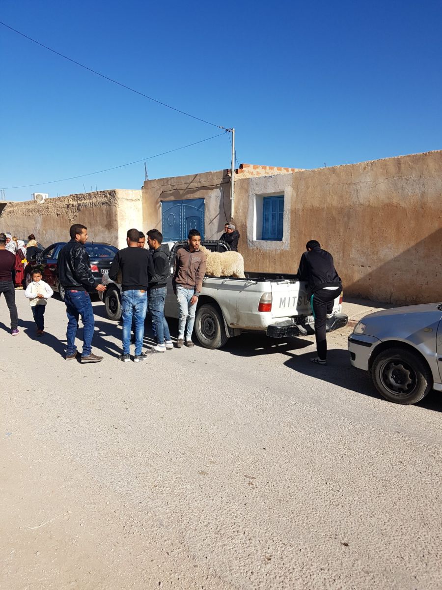Vorgestern gab es wieder mal eine Hochzeit. Eine lange Autoschlange fuhr hupend und mit Warnblinkanlage zum Haus der Braut in einem Dorf ca. 40 km Richtung Gabes.
