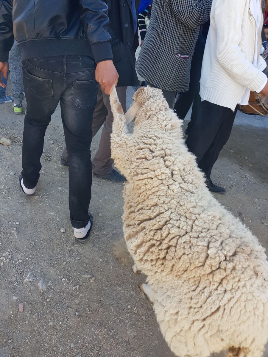 Das arme Schaf, das als Hochzeitsmahl auf dem Pickup gebracht wurde, wurde dann recht unsanft zur Schlachtbank gezerrt. Wie Tiere hier behandelt werden, damit hab ich ja desöfteren ein Problem und manches Mal muß ich aufsteigende Übelkeit unterdrücken. Nicht nur die Hunde werden oft an viel zu kurzer Kette gehalten, um sie scharf zu machen. Auch bei den Metzgern werden die als nächstes zu schlachtenden Tiere direkt an der Straße vor dem Laden angebunden und sozusagen ausgestellt.