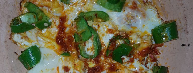 Na klar, es wird mit Harissa gemacht. Mega! Lecker! Wer gerne scharf UND Low Carb ißt: ein optimaler Snack  oder Frühstück oder Abendessen.