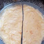 zwei bis drei verklepperten Eiern, die man mit etwas heißer Hühner- Brühe und 1/2 bis 1 TL Zimt stocken läßt, vermischt.