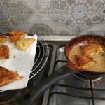 In einer kleinen Pfanne fast schwimmend in Öl von beiden Seiten goldbraun braten.