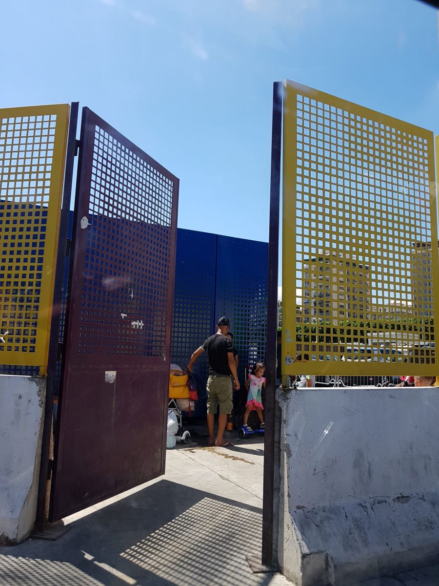 Endlich war ein Polizist am Hafen. Ich fragte ihn, wo das Grimaldi Schiff ablegt und er zeigte mir, dass ich durch die Schranken musste (die aber geschlossen waren!). Die Schranken wurden geöffnet und ich fuhr die Strecke zur Mole 28, wo die Grimaldi Line stand.
