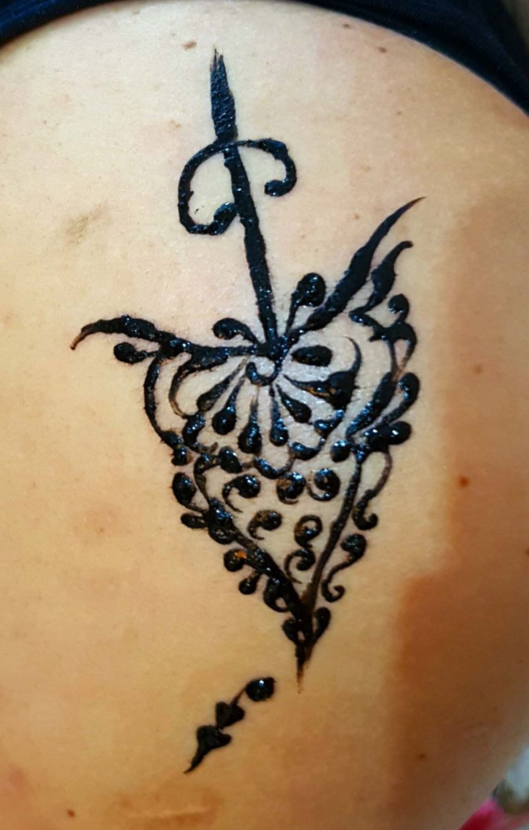 Der Hennatag ist der nervigste für mich, denn man wartet meist lange, bis man dran ist und dann wartet man 2-3 Stunden mit in Plastiktüten verpackten Füßen und Händen. Da kann man gar nichts tun, nicht lesen, nicht mit Handy spielen, nur liegen oder sitzen und warten. 20180805_184050Wenn der Hennabrei dann wieder abgerieben ist (nicht waschen, er darf bis zum nächsten Tag möglichst nicht mit Wasser in Berührung kommen, denn er dunkelt erst noch nach), wird etwas Olivenöl daraufgerieben und man schläft tunlichst mit Socken. Am nächsten Tag kommt Hargouz dazu, die feinen schwarzen Strichzeichnungen, die es von Marokko bis Indien in unterschiedlichsten Ausführungen gibt. Auch hier muß man warten, bis es trocken ist und soll einen Tag nicht mit Wasser in Berührung kommen, was schwierig ist, wenn es 36 Grad hat und die Haut leicht feucht ist…naja, und kochen, sich waschen…… Zum Glück wird es diesmal bei der Schwiegermutter im Wohnzimmer gemacht: da gibts Klimaanlage und da ich gleich nebenan wohne, kann ich mich direkt anschließend noch vor den Ventilator stellen.