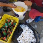 Die erste Hälfte der Strecke fuhr diesmal ich und daher konnte ich nicht erkennen, was das für seltsame Gegenstände waren, die Männer an langen „Angeln“ in die Straße hielten.