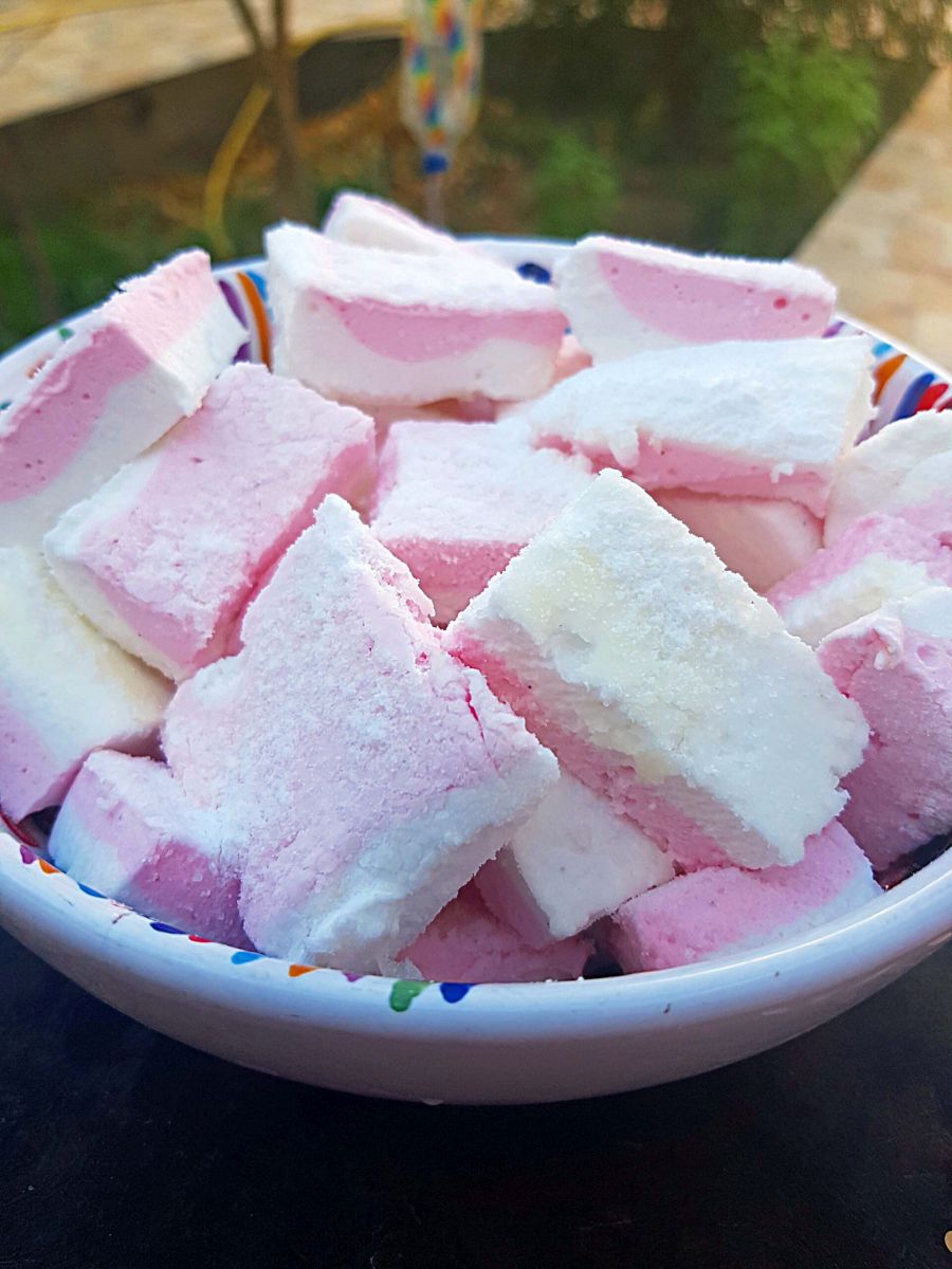 Gesünder sind die selbstgemachten Marshmellows bestimmt nicht. Hauptbestandteil ist Zucker. Aber als Kinder haben wir sie geliebt und – wir habens überlebt! Sie sollen ja nicht das Mittagessen ersetzen….