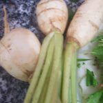 4 weiße Rübchen, geviertelt (siehe Foto rechts)