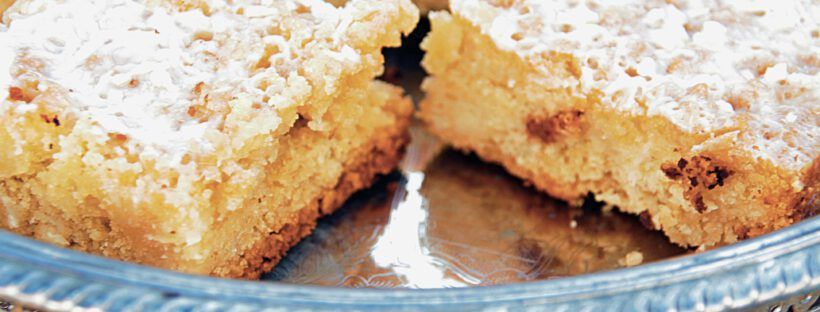 Einige Varianten des arabischen Grießkuchens habe ich ja bereits vorgestellt. Hier ist eine weitere. Statt nur mit Sirup kann man die Basbousa auch mit gesüßter Kondensmilch tränken. Durch die Kokosflocken wird diese Variante etwas fester. Man kann auch nur die Hälfte der Kokosflocken in den Teig geben, die andere Hälfte zusammen mit den Pistazien am Schluss oben drauf als Deko. Wer den Kuchen lieber weich mag, läßt die Kokosflocken weg oder tränkt zuerst mit einer Tasse aromatisierten Zuckersirup, dann mit etwas Milch und anschließend mit 1 Dose Kondensmilch.