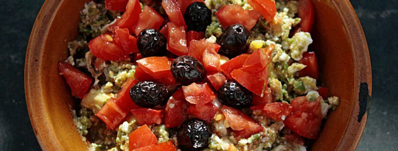 Auf den ersten Blick ist dieser Salat von der Insel Kerkennah ähnlich dem Slata Meschwiya, doch werden hier die Gemüse gebraten, nicht gegrillt und es kommen nicht zwangsläufig Knoblauch und Zwiebeln hinzu. Er ist ideal für ein leichtes Abendessen zusammen mit Brot.