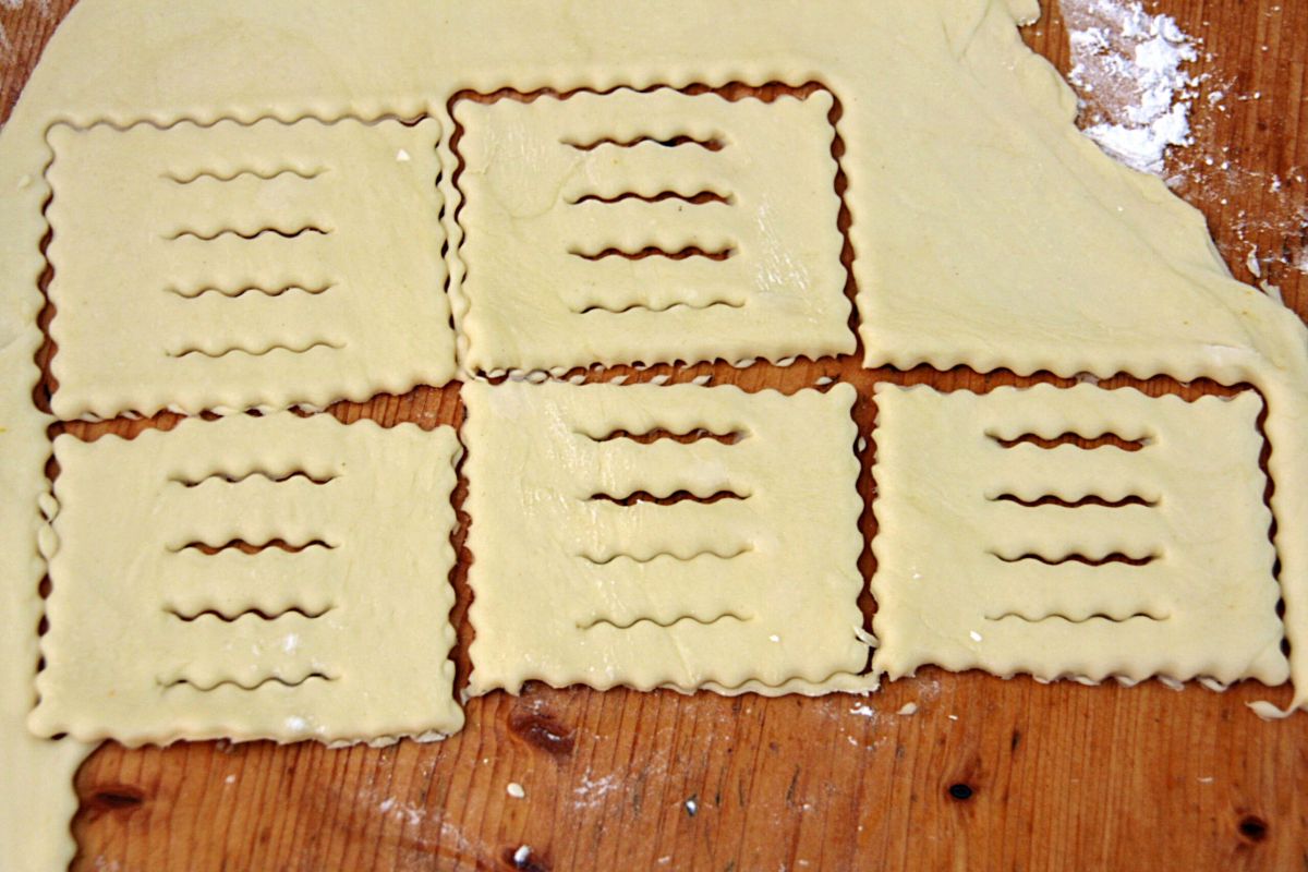 Arbeitsfläche mit etwas Stärke bestäuben.Teig zirka 1 cm dick ausrollen und mit einer Griwechform ausstechen.