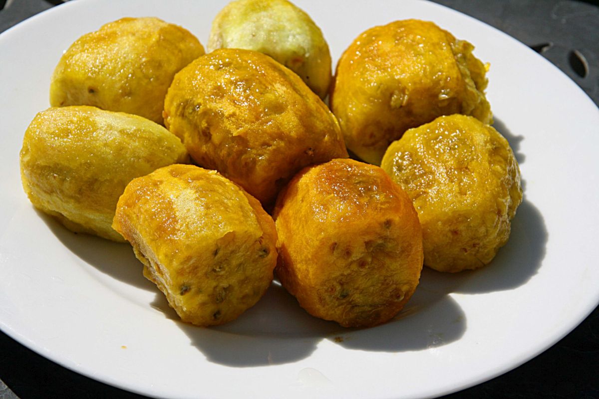 Hindi heißen sie hier, die Früchte des indischen Ohrenkaktus Opuntia ficus-indica. Er wuchert fast baumartig, säumt Straßenränder, markiert Feldgrenzen und erreicht Wuchshöhen bis zu 6 Metern.