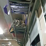 Auf dem mittleren Vierersitz döst eine Familie. Der kleine Sohn muß mal und Papa geht mit ihm. Als sie zurück kommen, springt der Knabe munter voraus und mit Schwung auf Papas Sitz, doch dieser kippt weg. Papa kann ihn grade noch festhalten. Auch unsere Sitze sind nicht fest: wenn man sich vorbeugt, um etwas aus der Tasche zu holen, klappt der Sitz vorne runter und hinten nach oben. Er liegt quasi nur locker oben drauf.