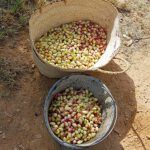 Was bedeutet, wir bekommen ungefähr 1 kg Mandeln (in der harten Schale!) und müssen die anderen dafür mit Pistazien versorgen. Also 2 Stunden pflücken wir sozusagen schon mal karitativ die etwa 5 kg (gewogen in der weichen Fruchthülle), die wir abgeben müssen. Der Rest für uns macht dann nochmal soviel aus. Nach 4 Stunden Pflücken machen wir Schluss für heute, denn ab 9h, 10h wirds sowieso zu heiß. Mit 43° im Schatten an den Nachmittagen – so denn einer zur Verfügung steht – ist man nicht mehr arbeitsfähig.
