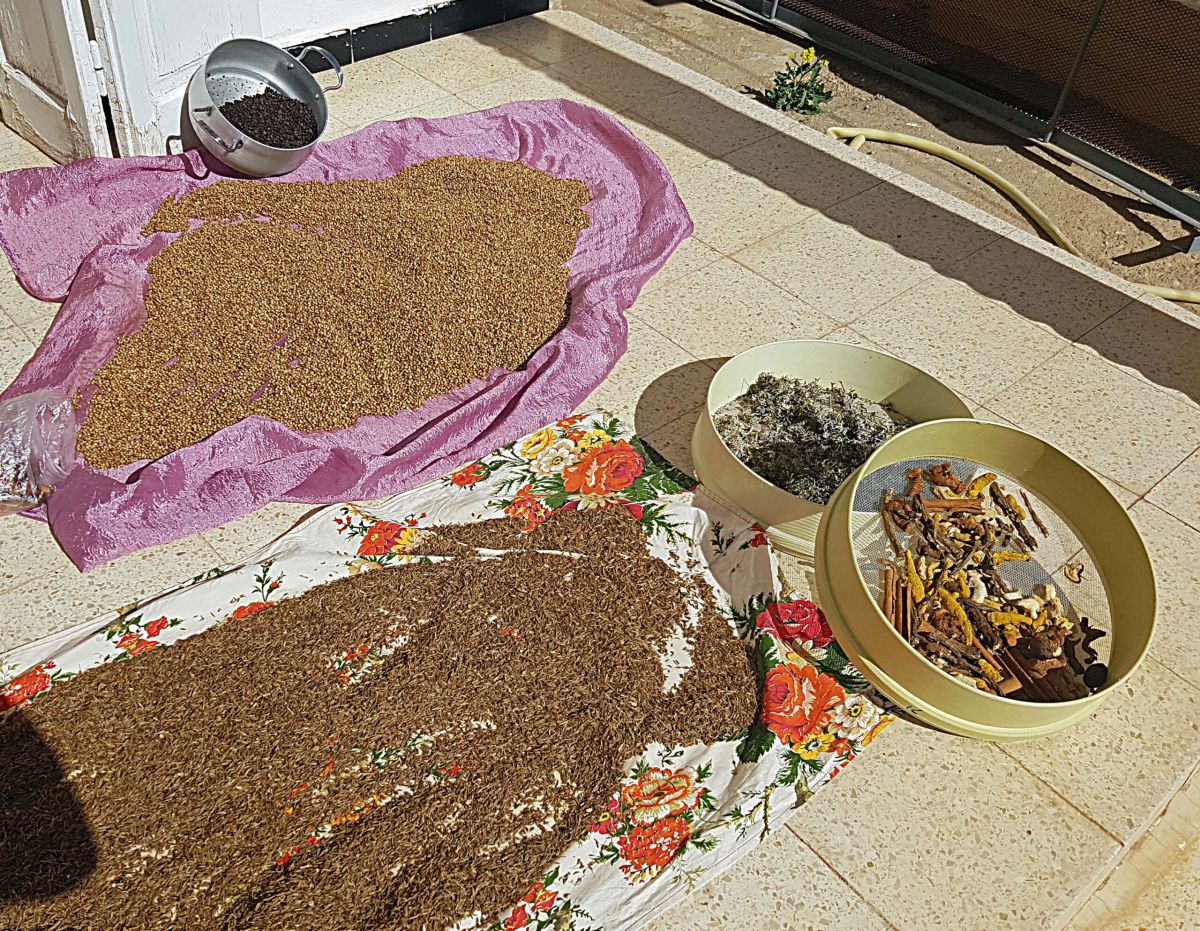 Am nächsten Tag sind sie schon trocken. Jetzt werden Kümmelsamen und GewürzeRas3zimtuswKoriandersamen gesiebt und der Rest anschließend noch auf fremde Pflanzenteile, Steinchen oder sonstige Verunreinigungen untersucht.