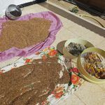 Am nächsten Tag sind sie schon trocken. Jetzt werden Kümmelsamen und Koriandersamen gesiebt und der Rest anschließend noch auf fremde Pflanzenteile, Steinchen oder sonstige Verunreinigungen untersucht.