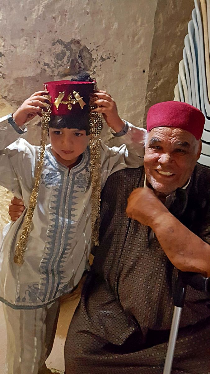 Ich, Anfänger in Sachen derartiger Feste (und auch nicht scharf drauf, jemals Profi zu werden) dachte natürlich: das Kind darf mit seinen Spielkameraden eine Stunde Kutsche fahren oder so. Weit gefehlt: Das Kind darf zwar Kutsche fahren, aber die 50 bis…..200 Gäste laufen mit, inklusive zweier Musiker (T`baar) mit großer Trommel und Zukra. Dafür steht nun bereits die Kutsche (tun. Kalyz, ägypt. Hantour) im Hof, ein herrlicher Spielplatz für alle anwesenden Kinder. Und dafür (und nur dafür !) werden traditionelle Kostüme ausgeliehen bei einer der zahlreichen örtlichen Kostümverleiherinnen.