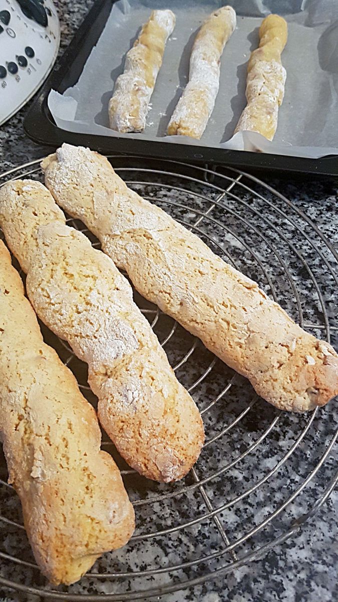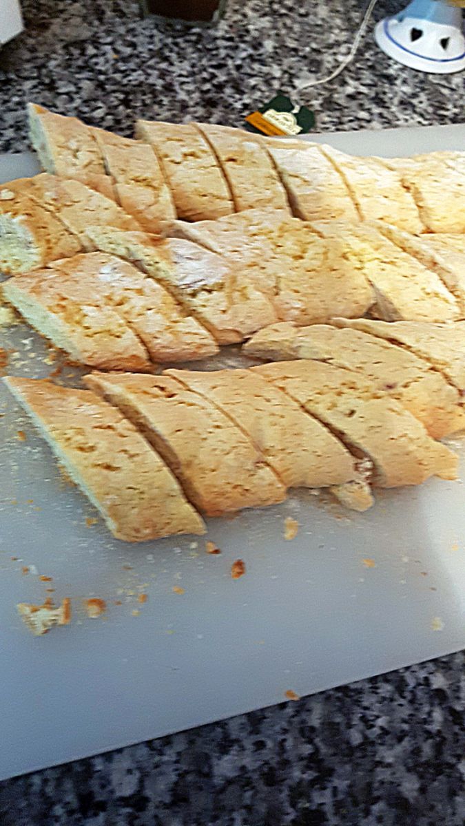 Das leckere italienische, doppelt gebackene Mandelgebäck läßt sich zum Glück problemlos selber herstellen- hier in Südtunesien gibt es sowas nicht im Supermarkt. Da dominieren die französischen Produkte. Vorausgesetzt, der Mandelvorrat reicht, mach ich das mindestens 1x pro Woche, denn es ist einerseits ein sehr beliebtes „kurz mal nebenher Nasch“-Gebäck, und andererseits perfekt für Tee und Kaffee und nicht zuletzt verwende ich es zerkleinert für Schichtdesserts oder über Pudding und Joghurt gestreut. Es hält sich – trocken aufbewahrt – sehr gut. War bei uns allerdings bisher nicht nötig.