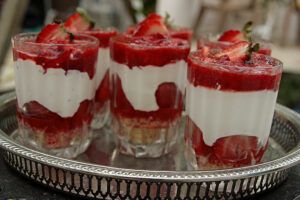 Mit Erdbeerpürree auffüllen. Dekorieren.