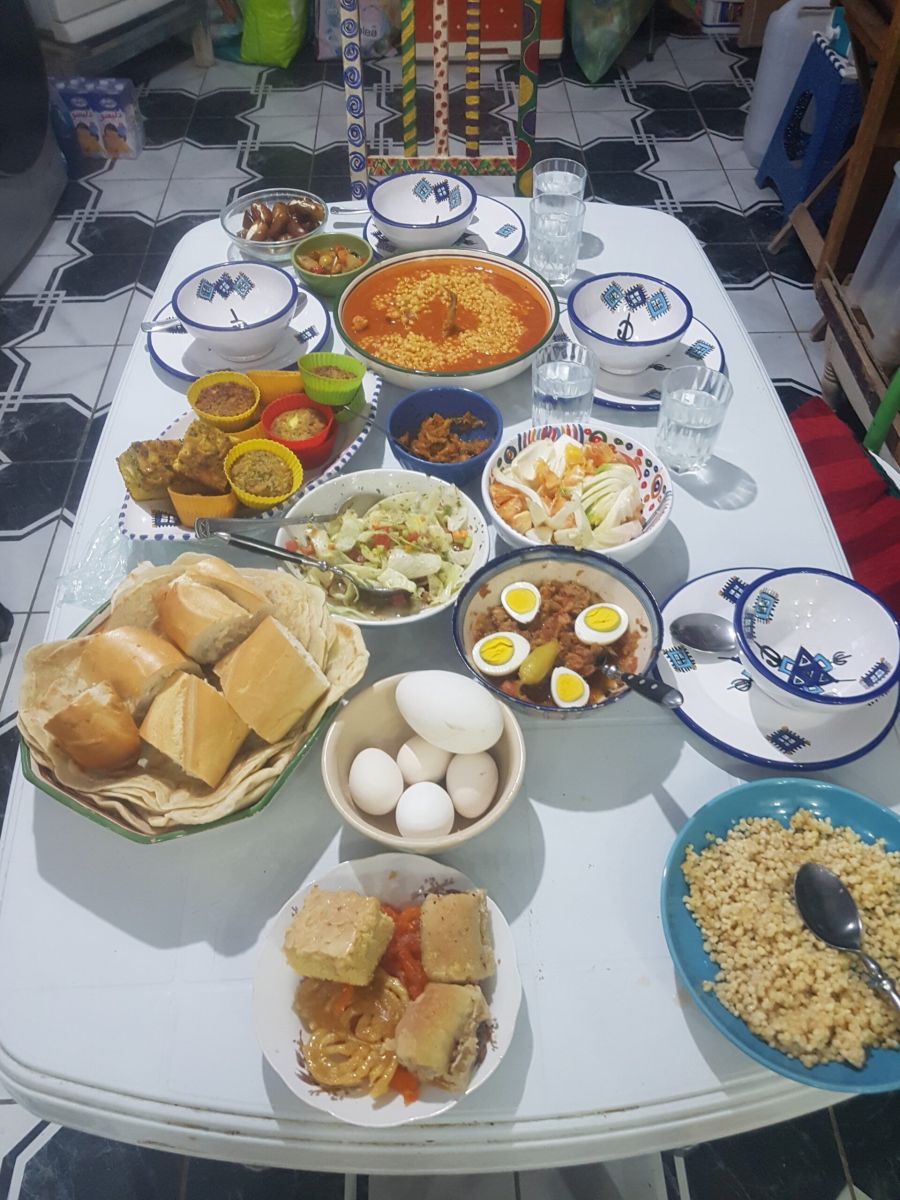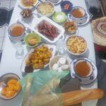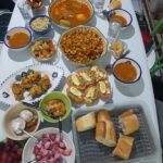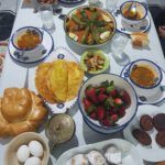 Es gibt im Ramadan keine explizit anderen Speisen als sonst, gefüllte Datteln vielleicht ausgenommen, nur viel mehr Auswahl. Ich habe mir vorgenommen, jeden Tag unseren Esstisch zu fotografieren und die Speisenauswahl (keine Speisenfolge, denn im Orient kommt ja traditionell alles gleichzeitig auf den Tisch) aufzuschreiben. Vielleicht kann jemand paar Anregungen brauchen 😉