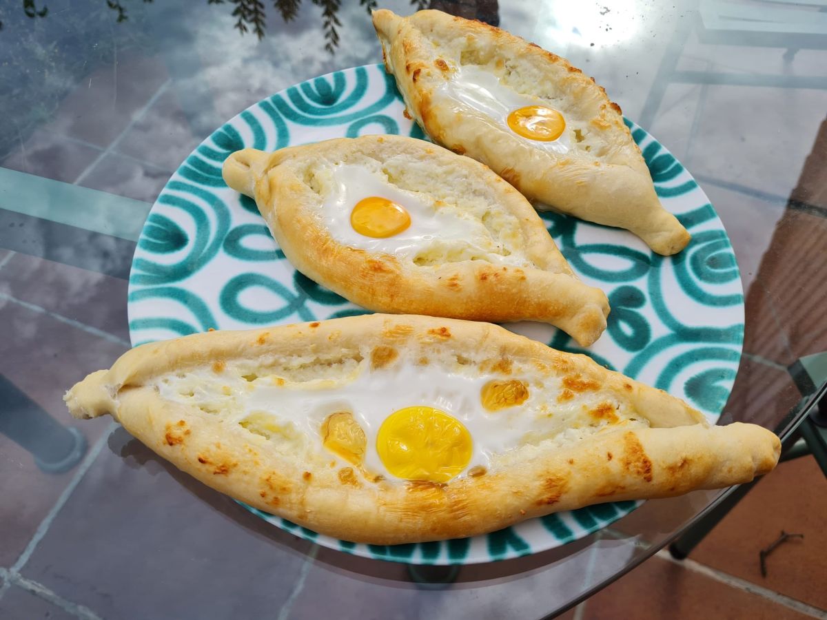 Man kann sie in Form eines gefüllten runden Fladens backen oder sie zu einem kleinen »Schiff« formen. Diese Schiffchen-Tradition kommt aus Adjara am Schwarzen Meer. In die »Schiffe« wird gerne noch ein Ei geschlagen; das symbolisiert die Sonne, nach der die Matrosen navigieren. Auch in Russland sind diese Käsebrote beliebt. Die Schiffchen nennt man entsprechend »Lodka« im Russischen oder Khachapuri Adjaruli in Georgien.